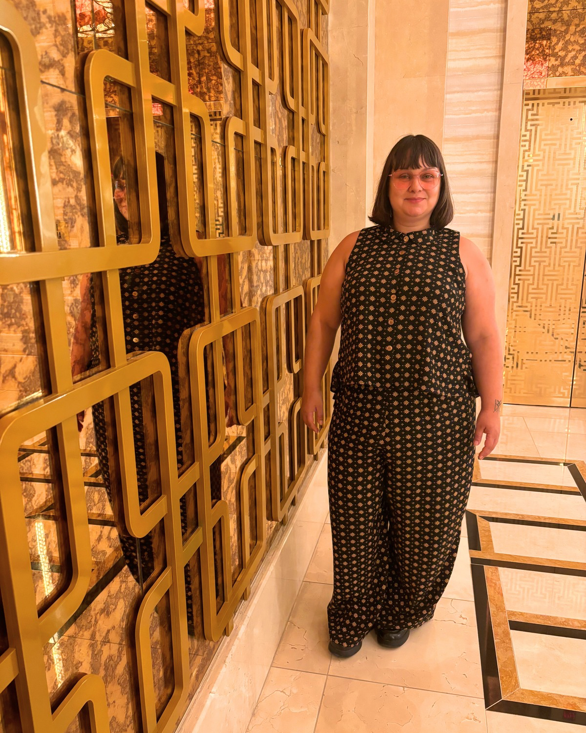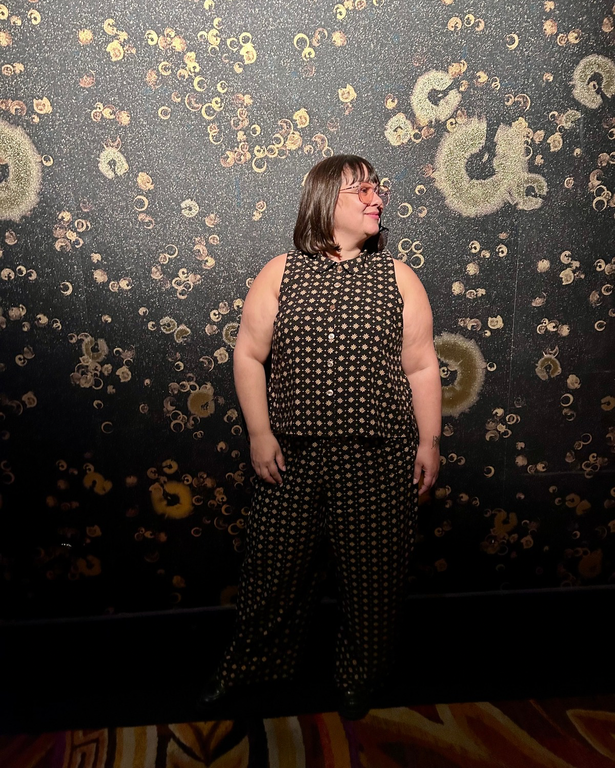 Yasmine porte East Harlem en Mid Century en taille 14 avec Get Back en Mid Century en taille TG.