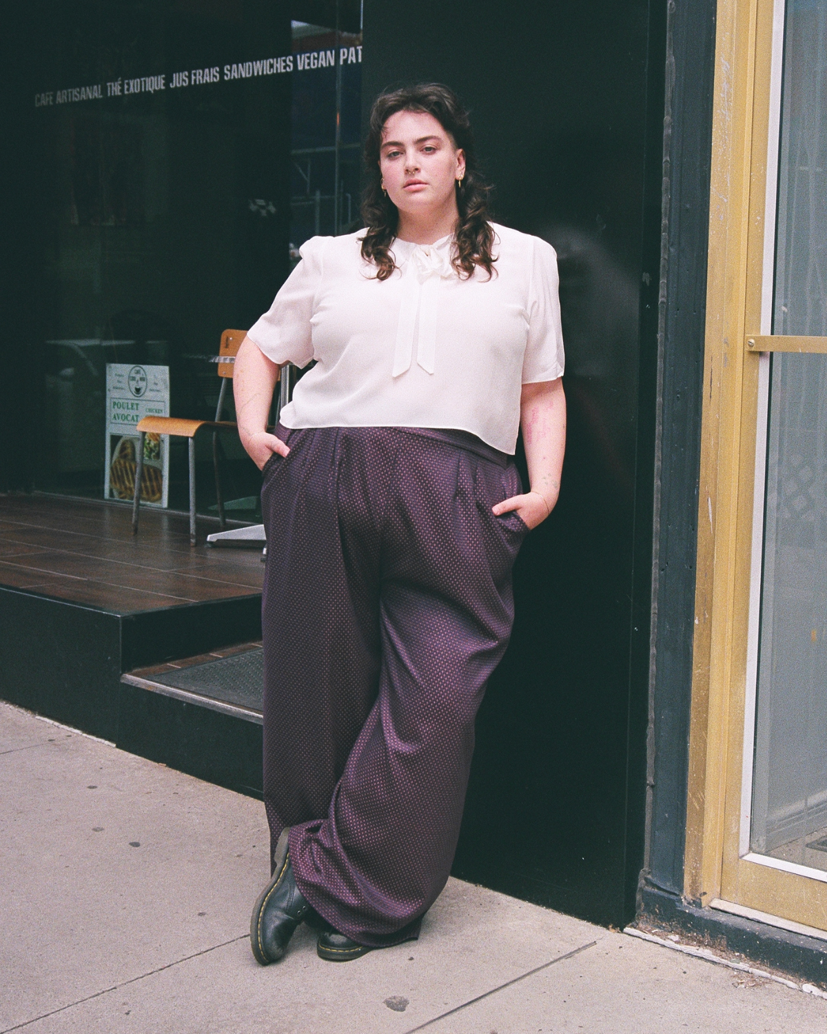 Amaya porte Grace en Cravate d'Homme en taille P avec Respect en Marine en taille 6 et, également, East Harlem en Cravate d'Homme en taille 6.