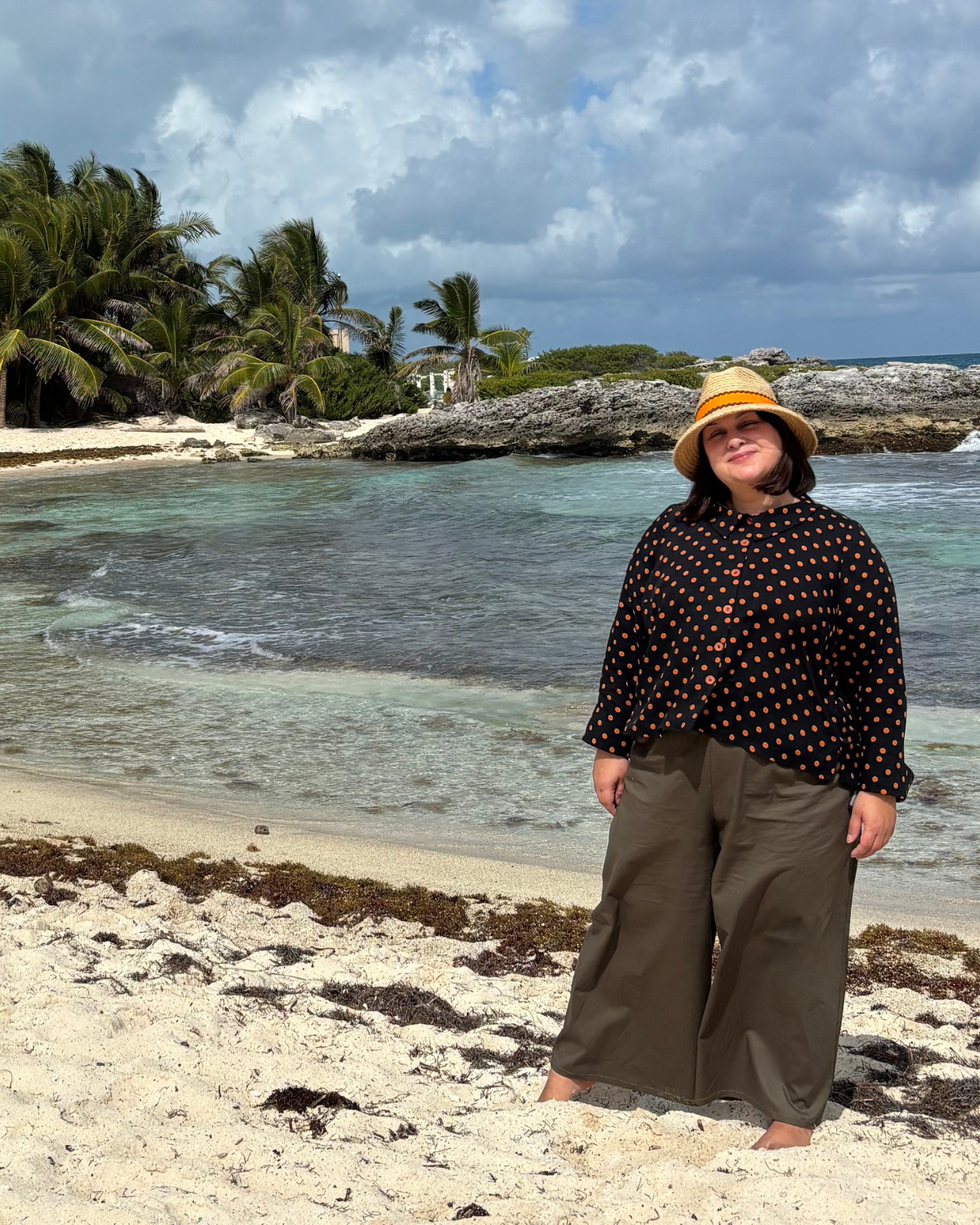 Ness porte la blouse Get Back en TG, elle est 5.10 et a un buste de 44"