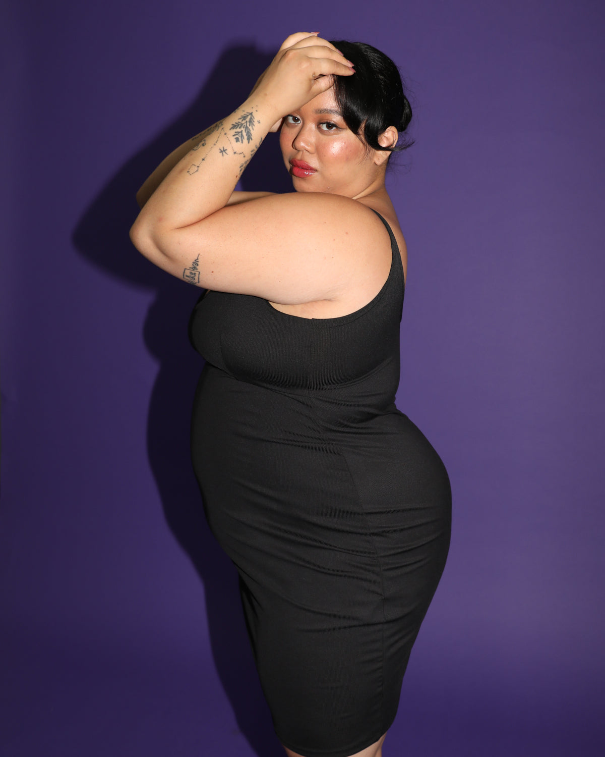 Sheila porte Skin On Skin en Noir en taille 3XL.