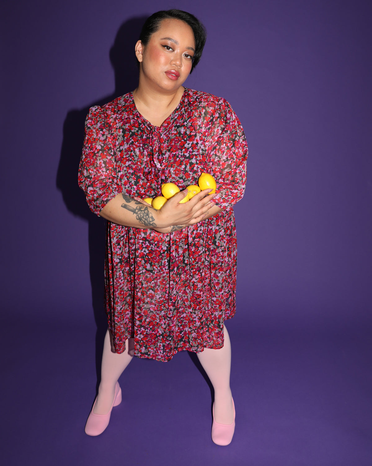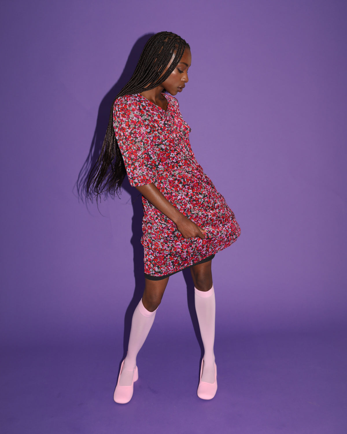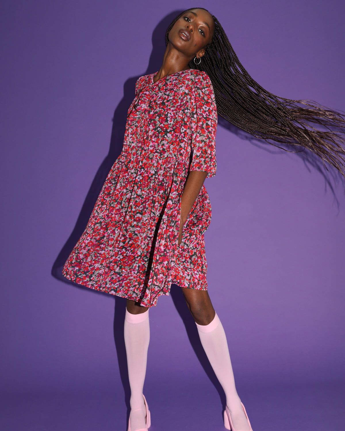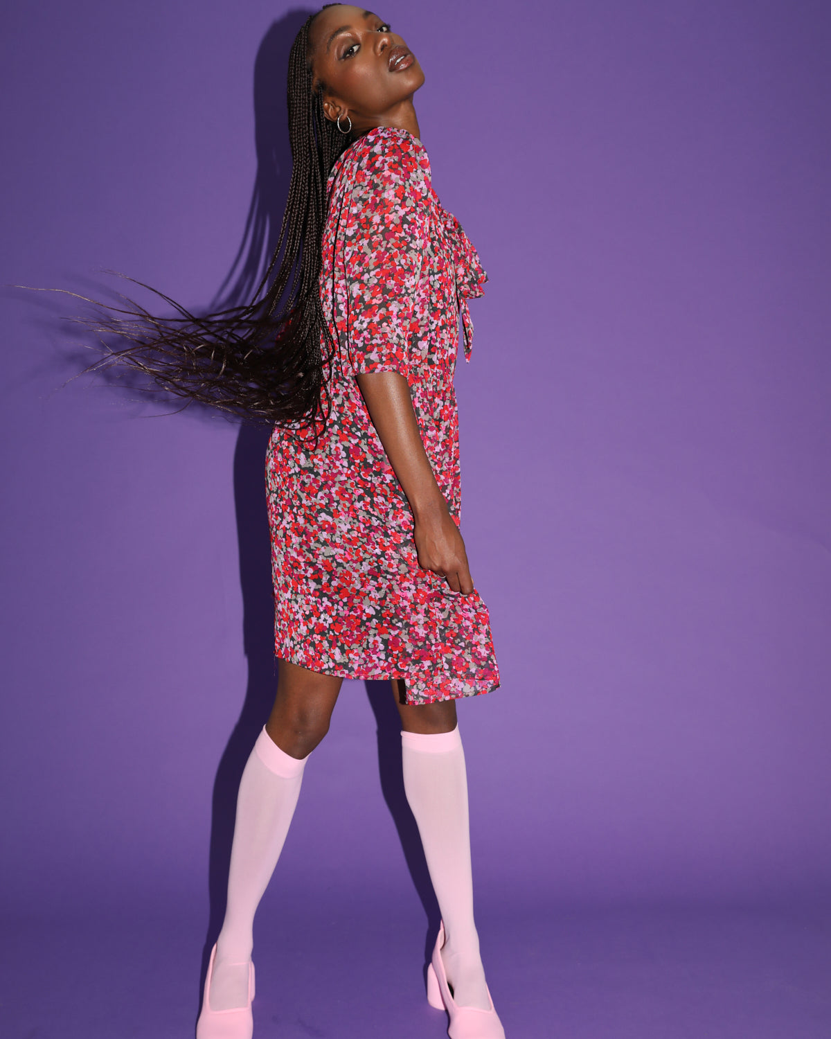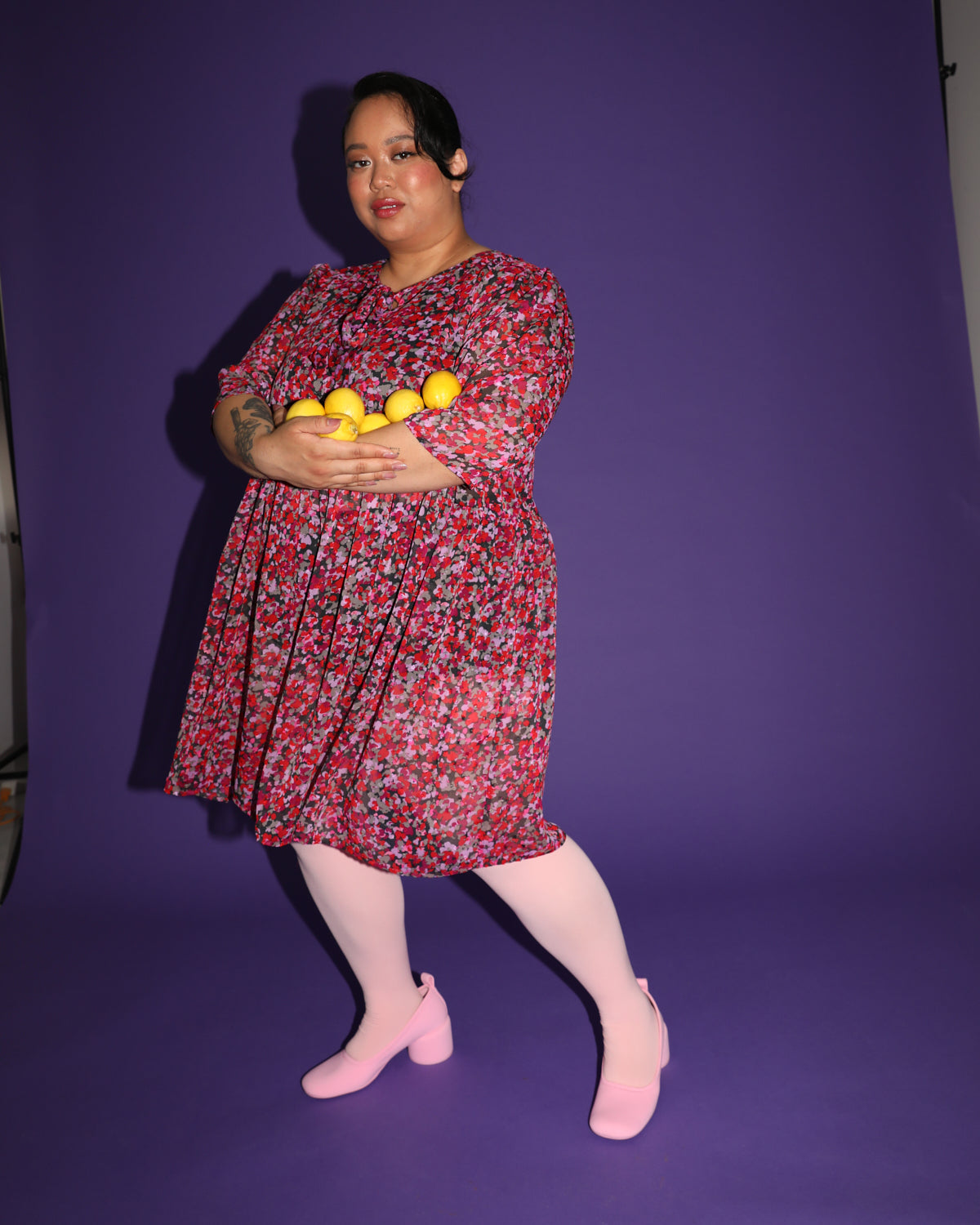 Fad porte la Honey Trap Dress en Floral en taille XS avec Jane Says en Floral en taille XS.