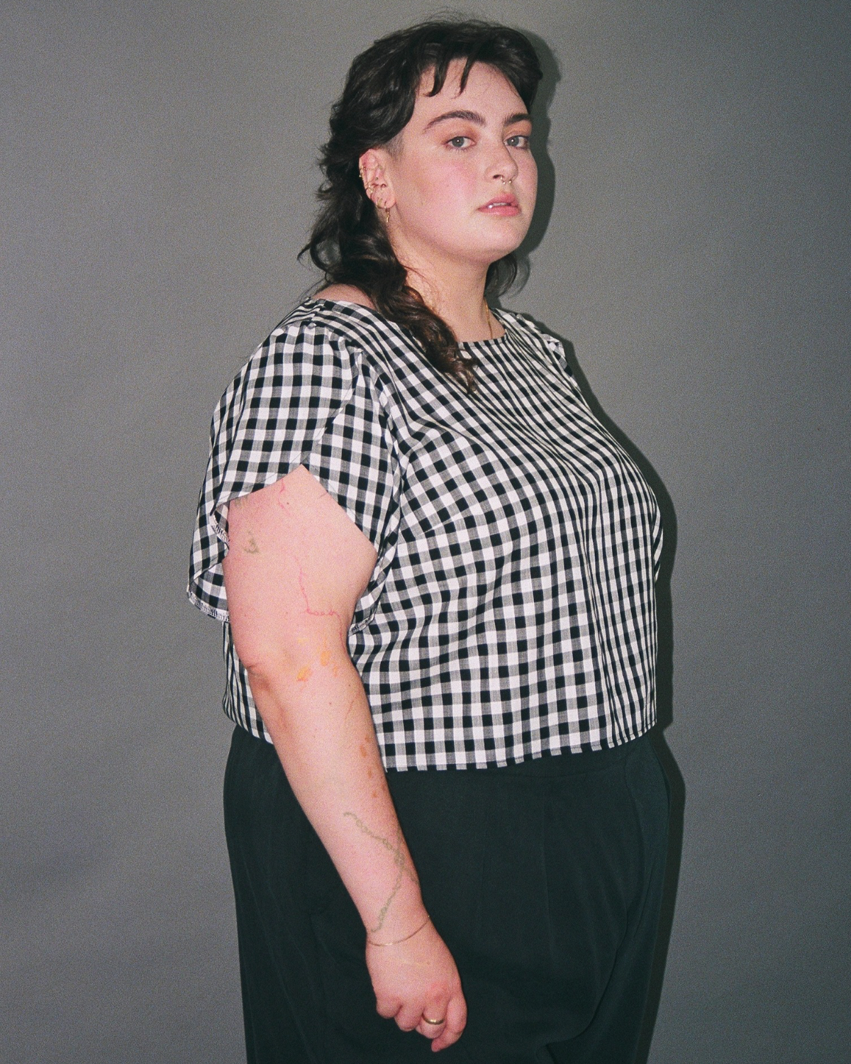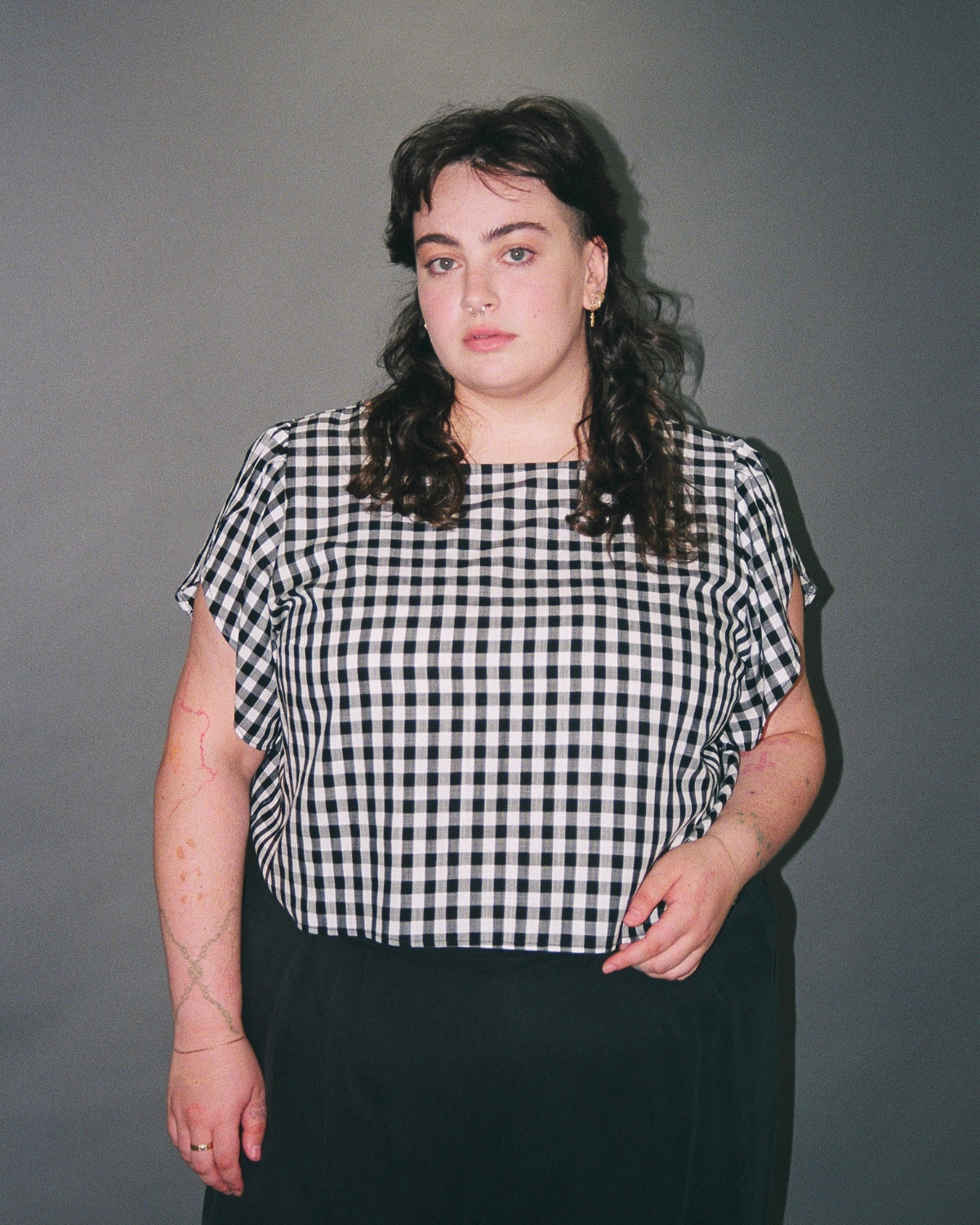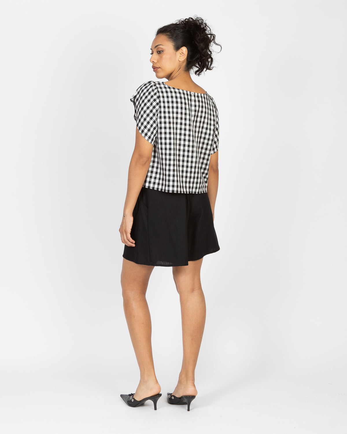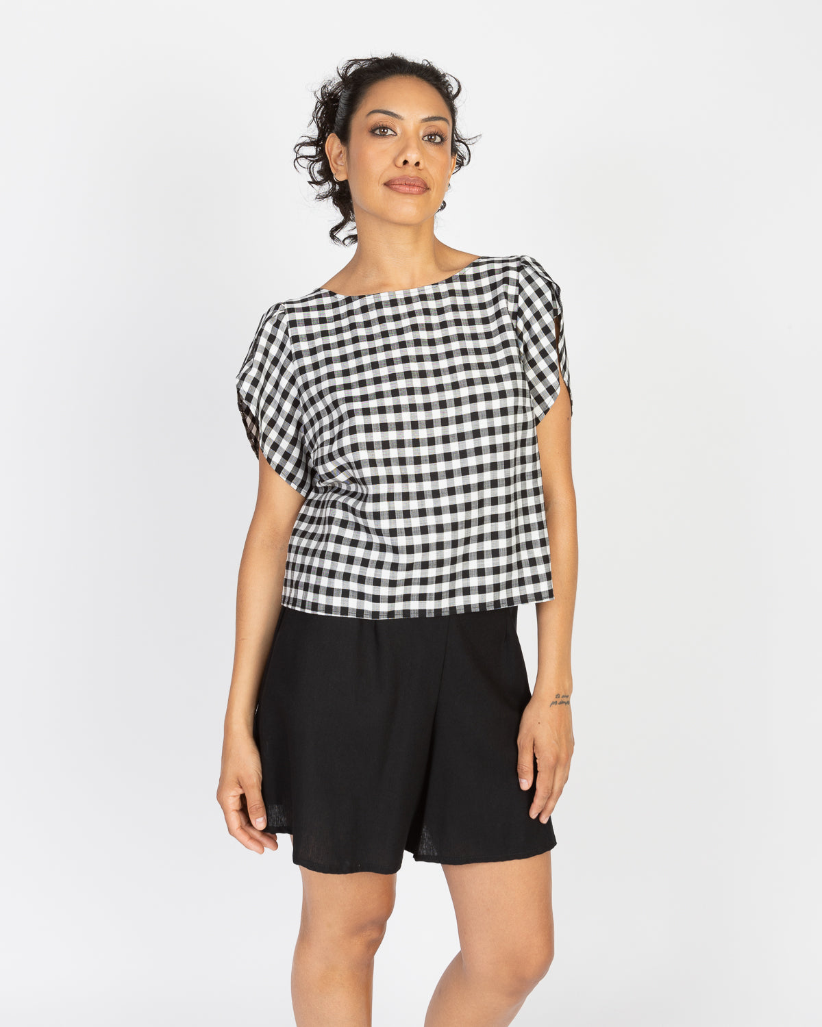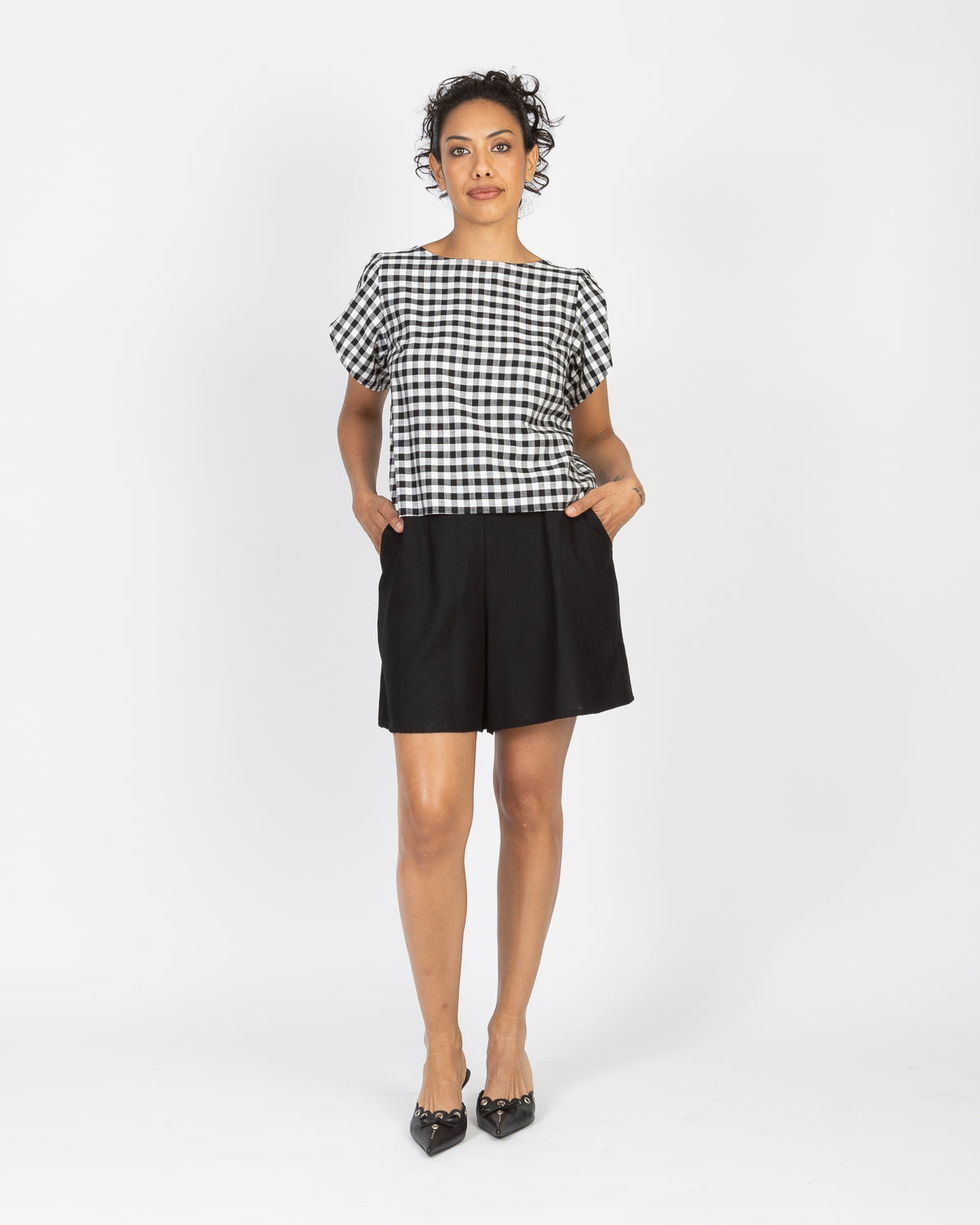 Amaya porte Naked eye en Vichy en taille P avec Big lies en noir en taille 6.