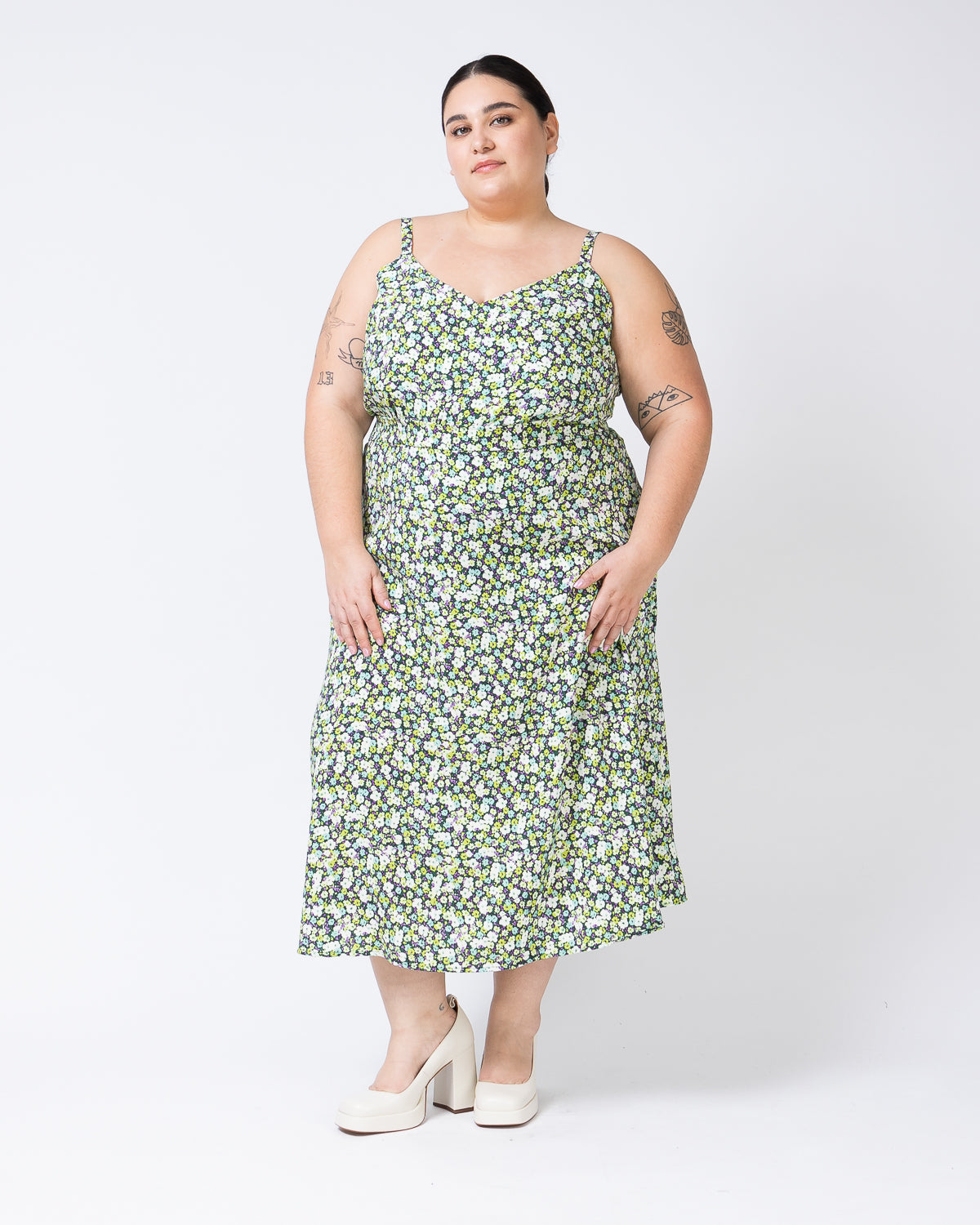 Gabriella porte Only you en Florale en taille 2TG avec Superfreak en Florale en taille 2TG et Big Lies en Sable en taille 18.