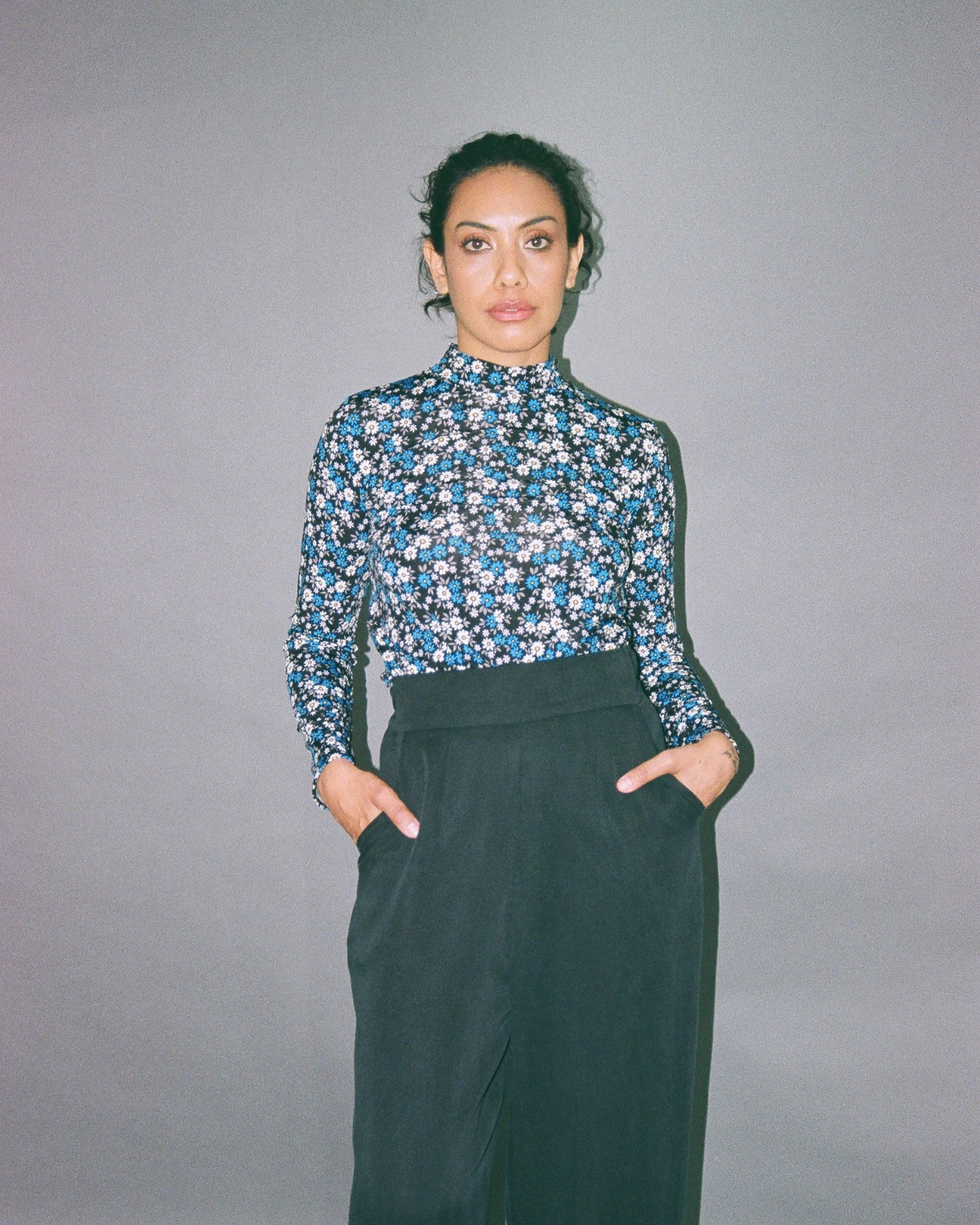 Amaya porte Primitive Love 2.0 en Fleuri en taille P avec Crocodile Rock en Fleuri en taille P et aussi avec East Harlem en Noir en taille 6.
