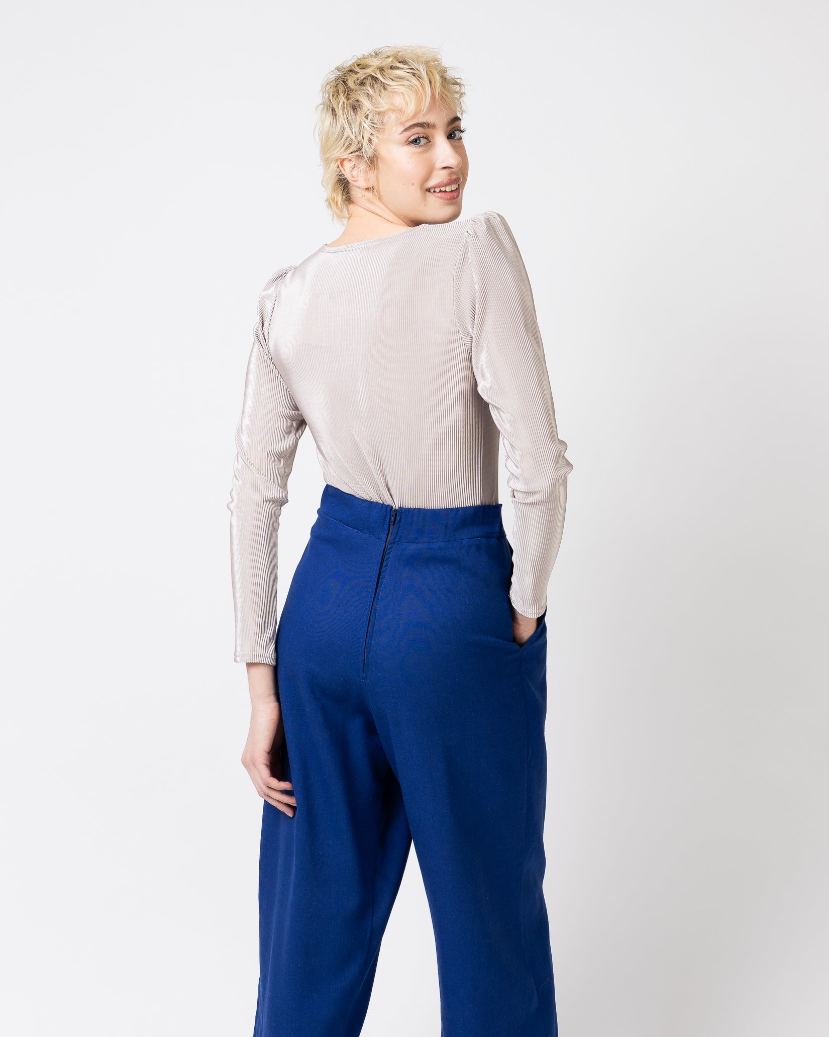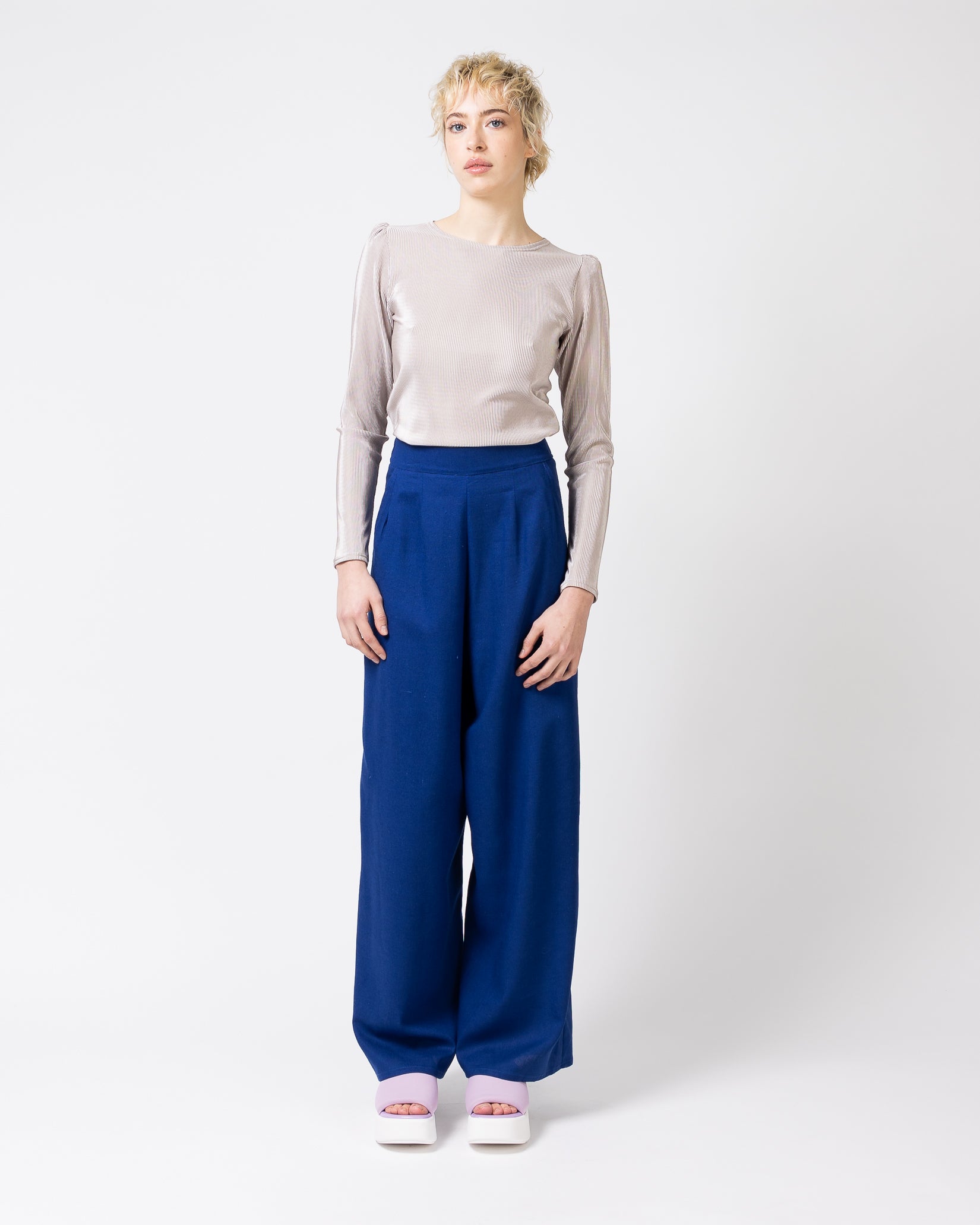 Juliette. porte Rock Lobster en XS en Quartz avec East Harlem en taille 2 en Cobalt.