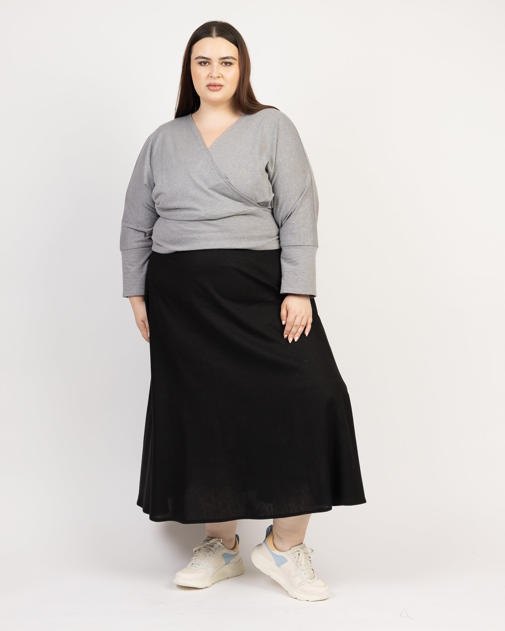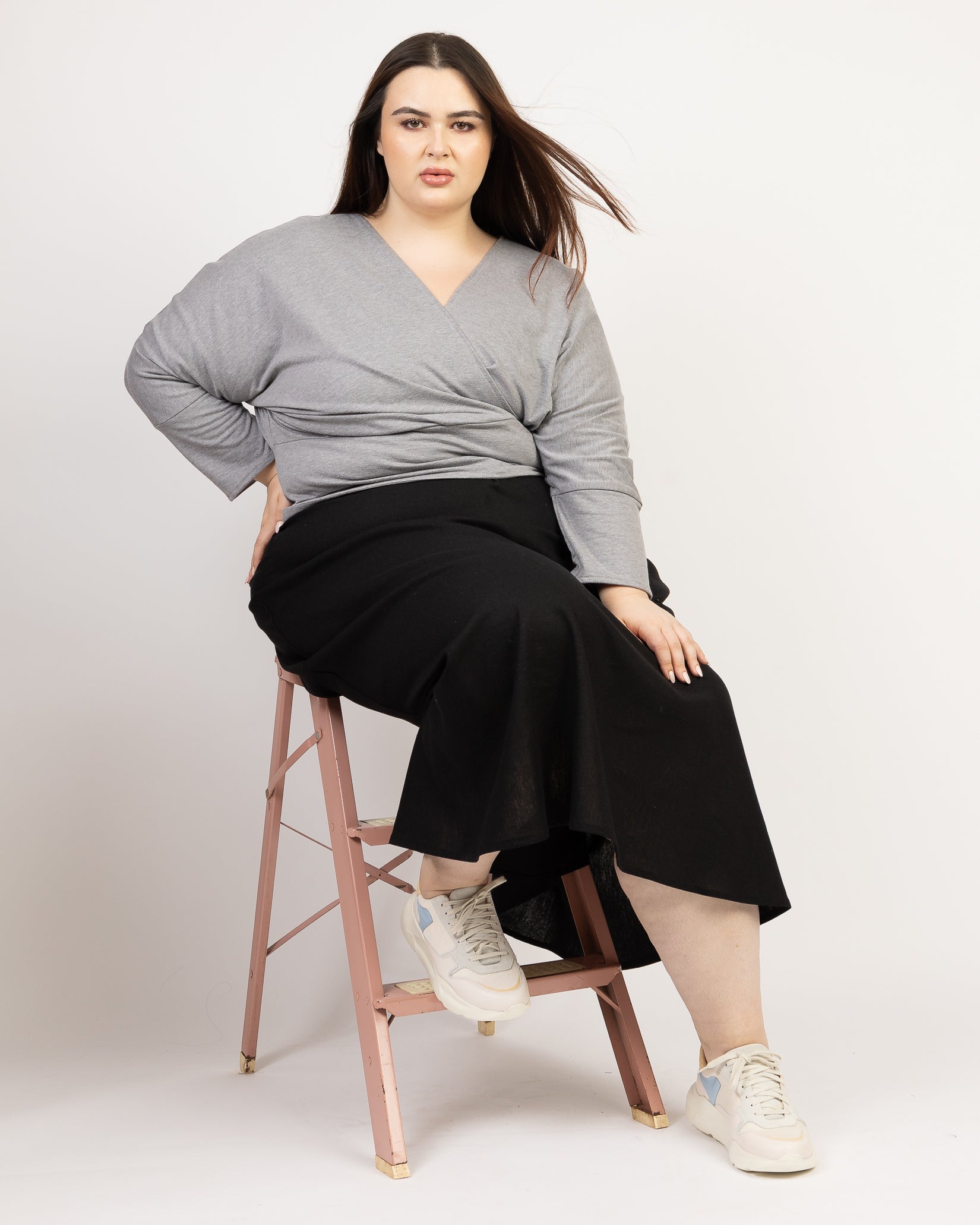 Sonia mesure 5'7 et porte East Harlem en taille 6 avec le Grey Spell en taille Small. Abriana mesure 5'6 et porte le Super Freak en noir en 3XL et le Spell en gris en 3XL.