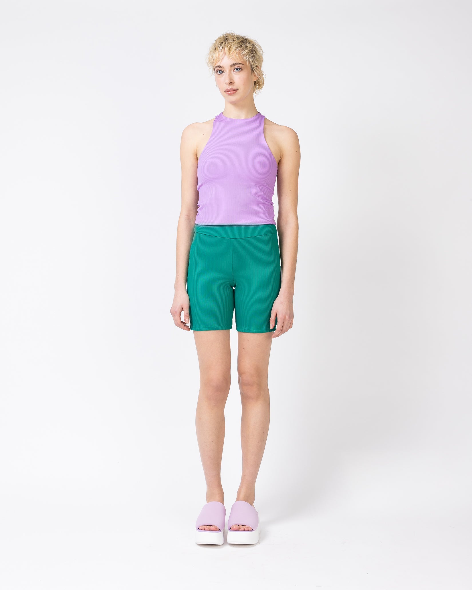Juliette porte un débardeur Starman en Violet en TP avec un legging Long Jane en TP en Violet. Elle porte également le débardeur Starman avec Bicycle Race Greenlake en TP. Gabriella porte un débardeur Starman en taille 2TG en tomate cerise avec un short chauffant en taille 2TG. Pour plus de maintien, elle pourrait porter un Starman en TG.