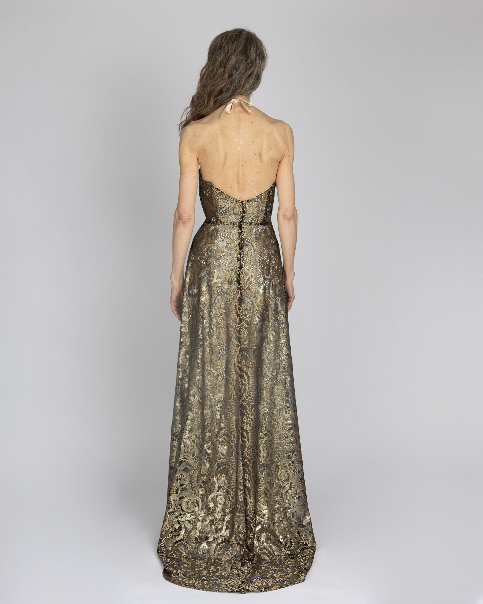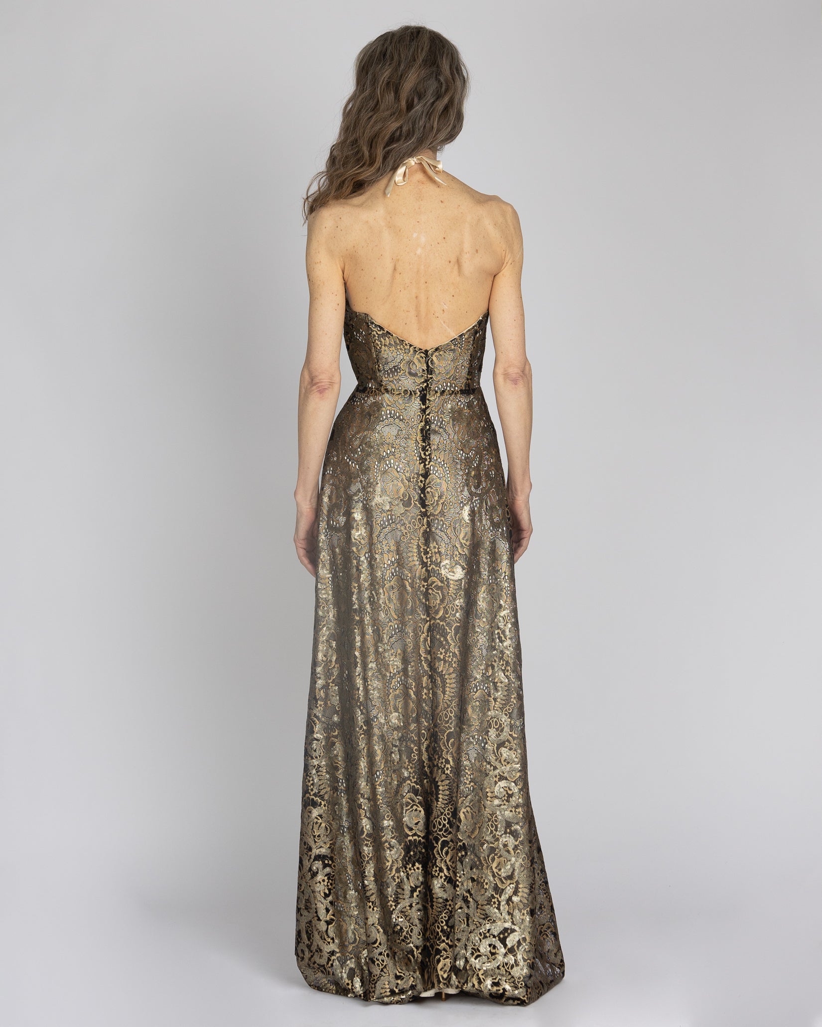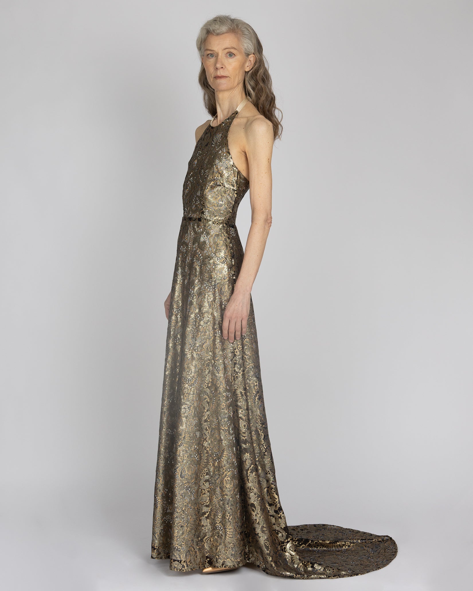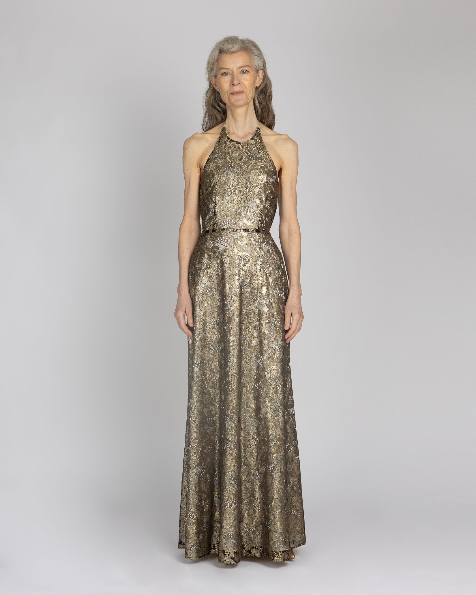Ingunn is 5’7” and is wearing Cherish Gold in size 2.