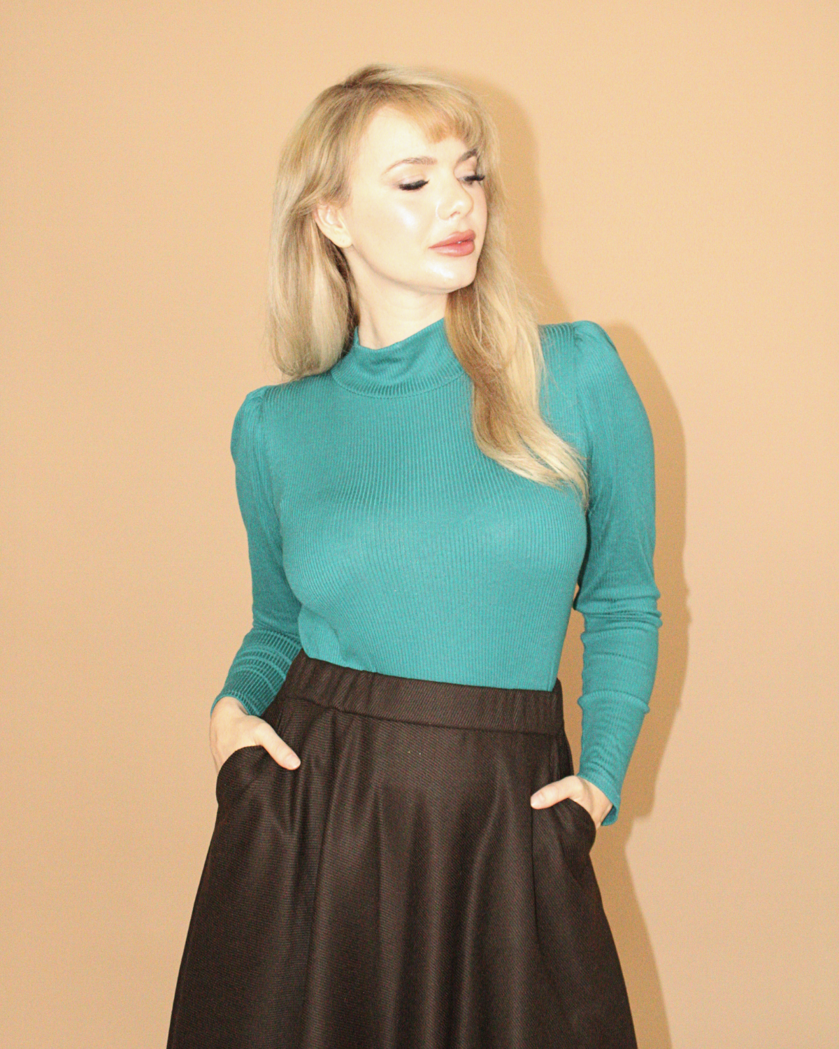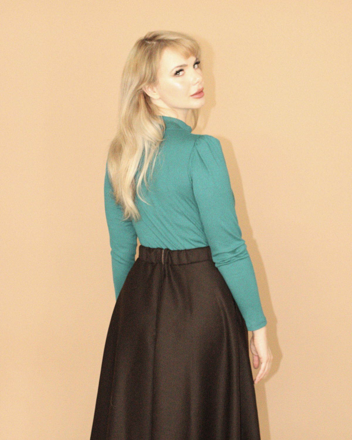Kandle is wearing Rock Lobster in Teal in size S with New Wave in Brown in size S.