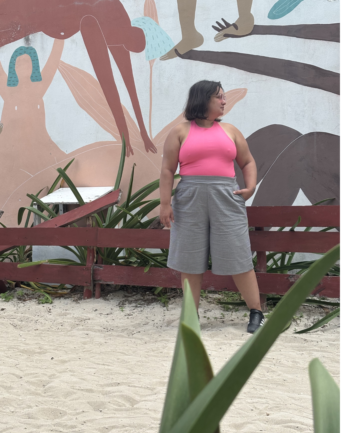 Marie is wearing the Starman tank and the Heated shorts in XS in Flamingo